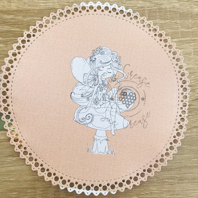 Then I needed a image for the centre and this time I used the adorable serenity-blossom image which I added to a sheet of distress-ink-papers-plain and then I coloured her in using Promarkers.