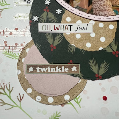 Today I am sharing a layout for The Mad Scrapper Blog and I'm using a great collection from Simple Stories which you can pick up in store called Boho Christmas Collection Kit 12"X12" . It has some wonderfully whimsical images on the papers and sticker sheet. The photo was taken last year on the Christmas carousel and I thought it would be fun to use circles on the layout today.